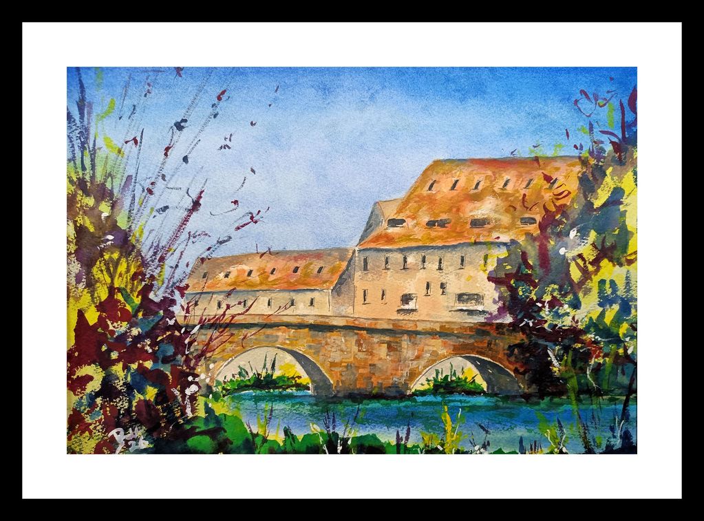 Huntingdon - Godmanchester Bridge. Watercolour in A2 frame.